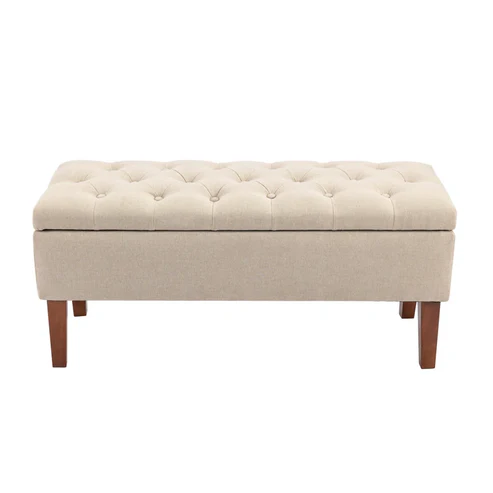 Tufted Upholstered Storage Bench with Wooden Legs