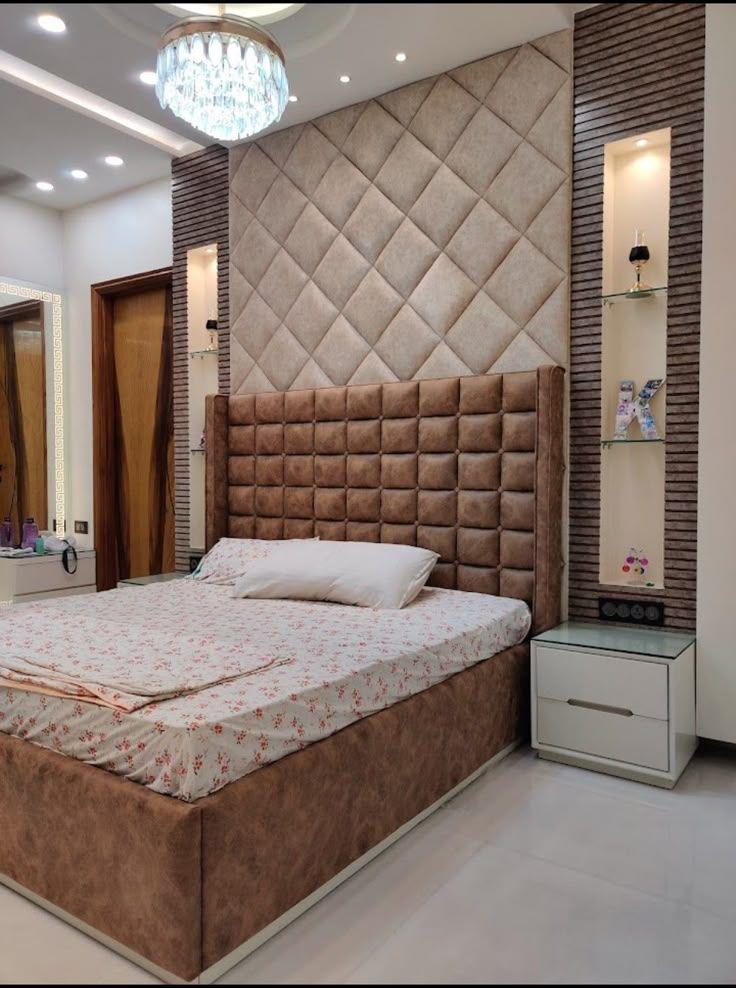 Elegant Bedroom Design with Upholstered Headboard & Wardrobe